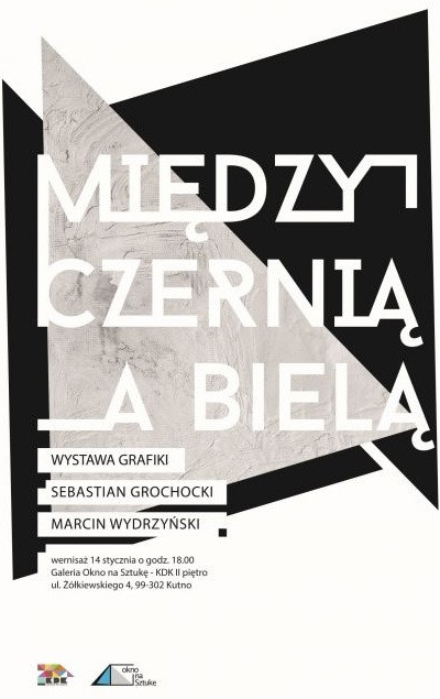 "Między czernią a bielą" to wystawa dwóch młodych artystów - Sebastiana Grochockiego, absolwenta Akademii Sztuk Pięknych w Łodzi oraz Marcina Wydrzyńskiego, studenta V roku tej samej uczelni. Będzie to okazja aby zobaczyć i porównać ze sobą dwie postawy grafików wykonujących prace w technice gipsorytu. Sebastian Grochocki uzyskał dyplom w 2014 roku, zajmuje się grafiką artystyczną, rysunkiem oraz projektowaniem graficznym. W swojej twórczości odwołuje się do mitologii. Marcin Wydrzyński to malarz, grafik i rysownik. W grafice i malarstwie skupia się na problemach egzystencji ludzkiej.