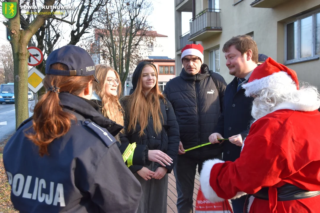 - Bezpieczeństwo pieszych na drodze w okresie jesienno-zimowym zależy od ich dobrej widoczności. Dlatego dbając o bezpieczeństwo mieszkańców naszego Powiatu wspólnie z Komenda Powiatową Policji w Kutnie postanowiliśmy wykorzystać tak miły dzień jak Mikołajki, aby przypomnieć o zasadach bezpieczeństwa i obdarować ich nie tylko słodyczami ale i opaskami odblaskowymi, które zwiększą bezpieczeństwo zarówno pieszych jak i rowerzystów. Nośmy odblaski bo widoczny znaczy bezpieczny. -mówił Daniel Kowalik Starosta Kutnowski.