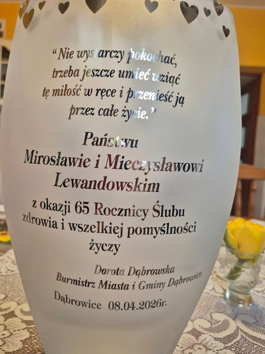 Spotkanie przebiegło w serdecznej i pełnej wzruszeń atmosferze. Nie zabrakło ciepłych słów, gratulacji oraz życzeń kolejnych wspólnych lat w zdrowiu i spokoju. Jubileusz był także okazją do podkreślenia, jak wielką wartością jest miłość oparta na wzajemnym szacunku, zaufaniu i codziennej trosce o drugiego człowieka.