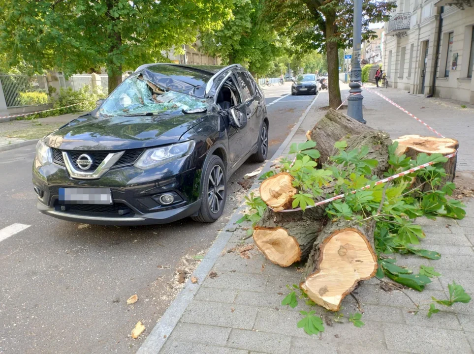 Te sceny rozegrały się 10 lipca br. w godzinach popołudniowych. Wówczas służby otrzymały informację o pokaźnych rozmiarów drzewie, które runęło na samochód kompletnie go niszcząc.