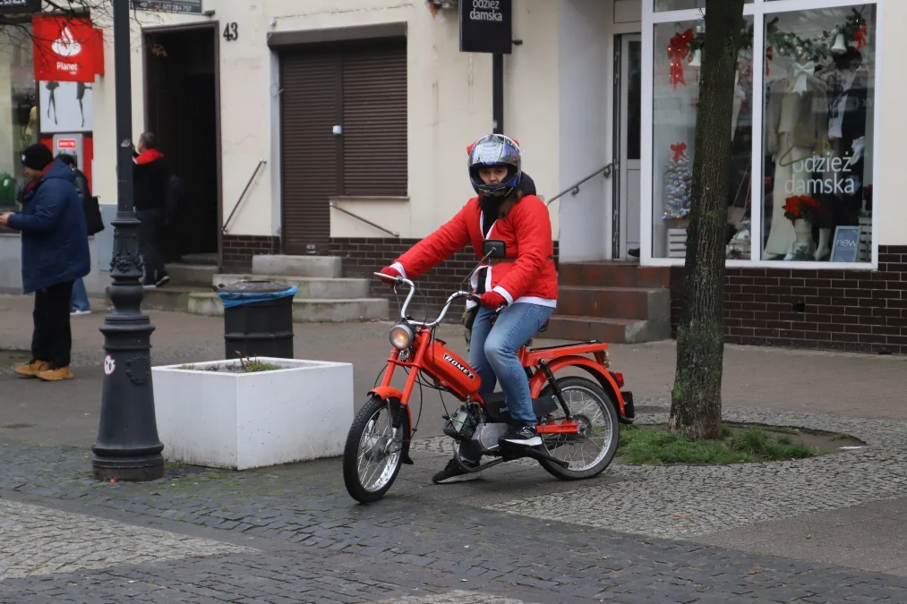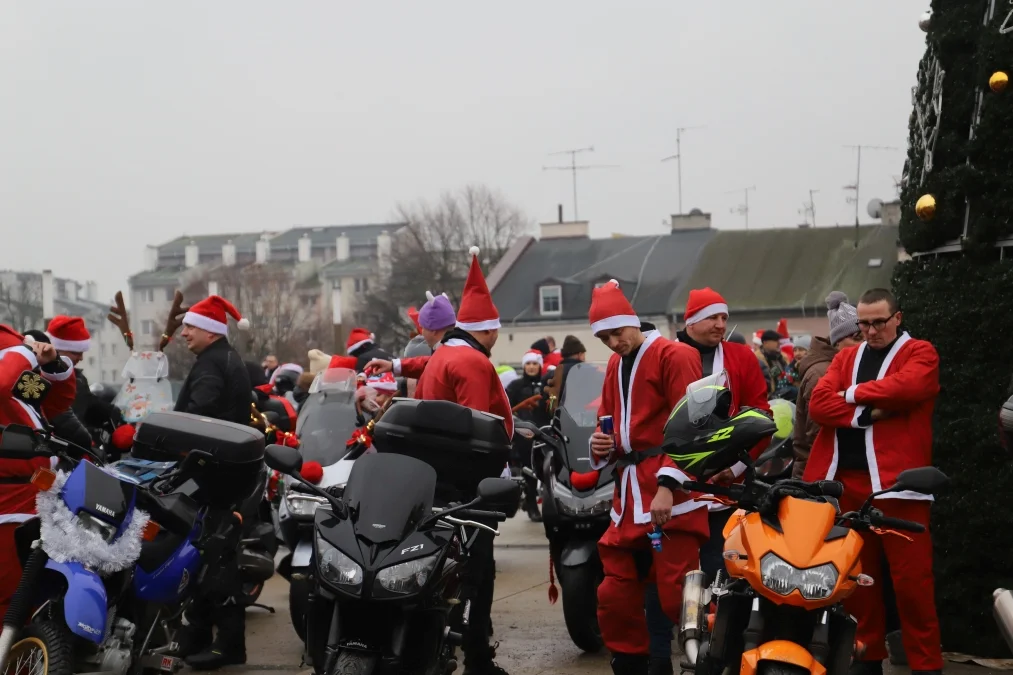 Nie zabrakło też pysznego jedzenia - od słodkości, waty cukrowej i pączków, po domowe wypieki przygotowane przez Koło Gospodyń Wiejskich z Różanowic. Całość dopełniały świąteczne piosenki, które stworzyły ciepły, radosny klimat i sprawiły, że Plac Wolności zamienił się w prawdziwą, motocyklową krainę Mikołajów.