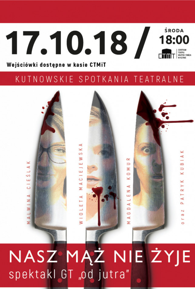 Spektakl w ramach Kutnowskich Spotkań Teatralnych. Zagra go Grupa Teatralna "Od jutra". Czarna komedia dla dorosłych w reżyserii Krzysztofa Ryzlaka. Sztuka autorstwa Jacka Getnera.