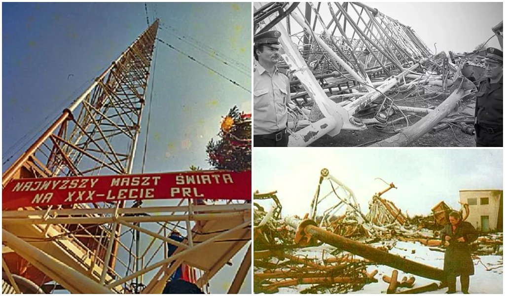 Najwyższy maszt świata budowano pięć lat, wystarczyła chwila, by obiekt runął jak domek z kart. Do katastrofy doszło 8 sierpnia 1991 roku o godz. 19:10. Budowla zawaliła się w trakcie prac konserwatorskich, a mianowicie podczas wymiany znajdujących się w kiepskim stanie technicznym odciągów. Jedna z lin pomocniczych wysunęła się z zacisków, druga zerwała się z mocowania, a górna część masztu złamała się i uderzyła w podstawę. Maszt runął w zaledwie kilkanaście sekund.