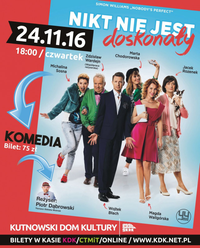 Już 24 listopada w Kutnowskim Domu Kultury spektakl komediowy wg Simona Williamsa. Bilety w cenie 75 zł dostępne w kasie KDK, CTMT oraz w sprzedaży ONLINE.
