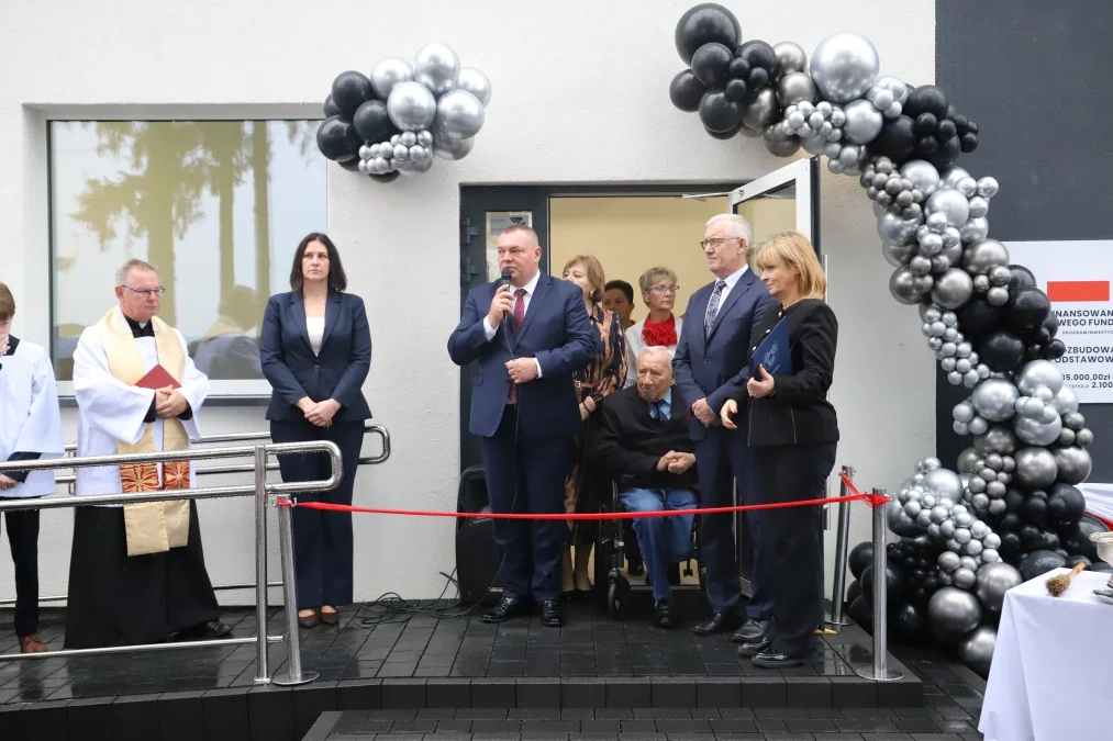 - Spotkaliśmy się tutaj z okazji oddania do użytku dobudowanej części szkoły, jak również wyremontowanej części istniejącego budynku. Ta inwestycja pozwoliła nam stworzyć nowy obiekt z sześcioma salami lekcyjnymi, nowoczesnymi łazienkami, korytarzami i szatniami. Zmodernizowana została również stara część szkoły, w tym hala gimnastyczna, łącznik oraz źródło ciepła - mówił wójt Tomasz Jakubowski.