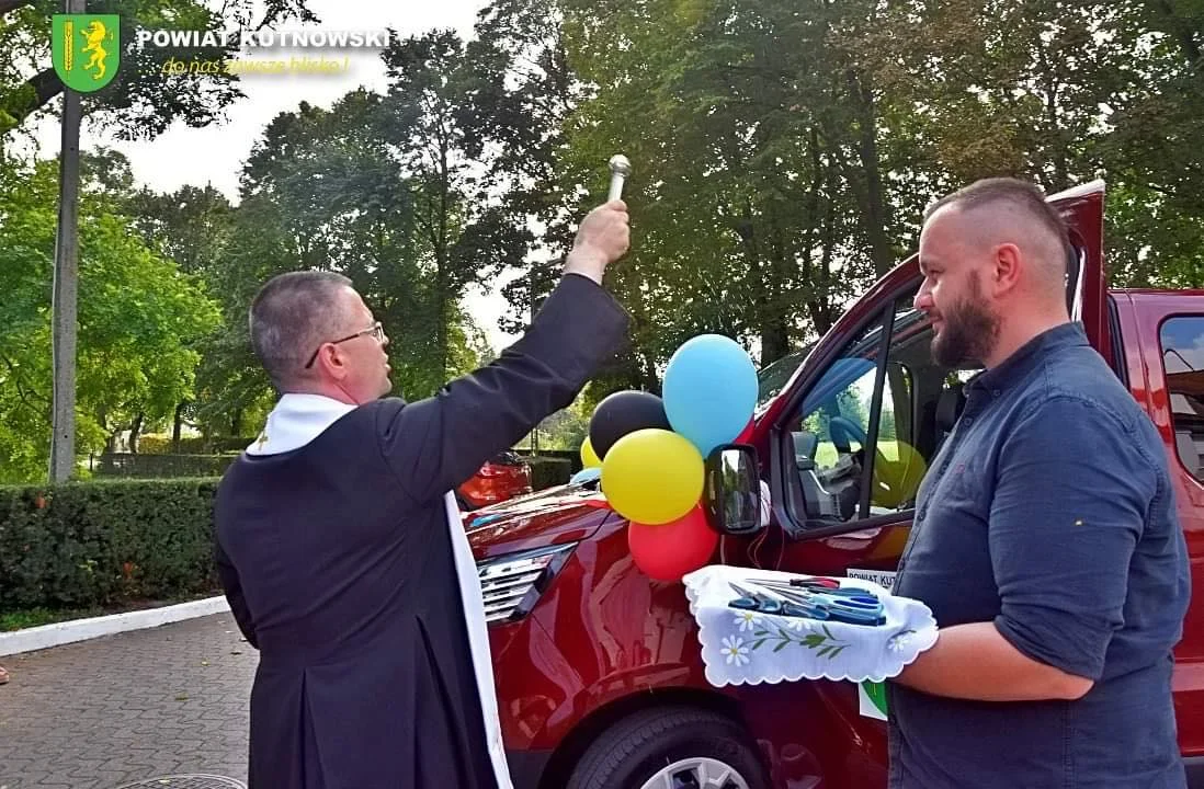 Podczas uroczystości ksiądz Robert Awerjanow z parafii w Bedlnie poświęcił samochód, a następnie wstęgę uroczyście przecięli: senator Przemysław Błaszczyk, starosta Daniel Kowalik, wicestarosta Magdalena Krupińska-Kotulska, Marta Znyk - dyrektor PCPR w Kutnie, Aneta Ciężarek - dyrektor DPS w Pniewie oraz ksiądz Robert Awerjanow z parafii w Bedlnie.
