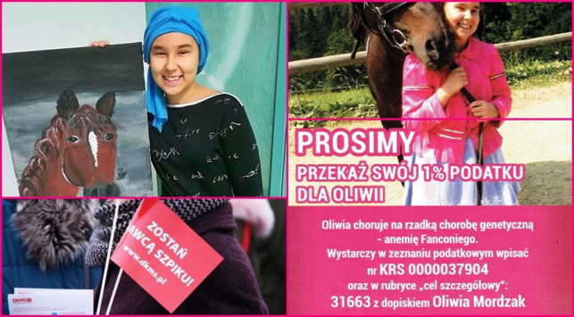 W taki właśnie sposób możemy wspomóc dalsze leczenie Oliwii, która co prawda przeszczep szpiku ma już za sobą, ale nadal wymaga leczenia. Przypomnijmy, że dziewczynka to dwunastoletnia członkini Zespołu Pieśni i Tańca Ziemi Kutnowskiej i uczennica Szkoły Podstawowej we Wroczynach. Dziewczynka cierpi na anemię Fanconiego, wrodzoną i bardzo rzadką chorobę krwi. Jej szpik pracuje zaledwie w 1/5. Oliwia słynie ze szczerego i szerokiego uśmiechu, który nie opuszcza jej twarzy nawet w tak bardzo stresujących chwilach, jakie przeżywała przez ostatnie dni. Jej wielką miłością jest jazda konna. Marzy o własnym koniu oraz o tym, aby w przyszłości zostać instruktorką jazdy konnej i zarażać innych swoją pasją.