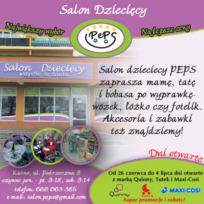 Salon Dziecięcy PEPS w Kutnie zaprasza - Mamę, Tatę i Bobasa - po