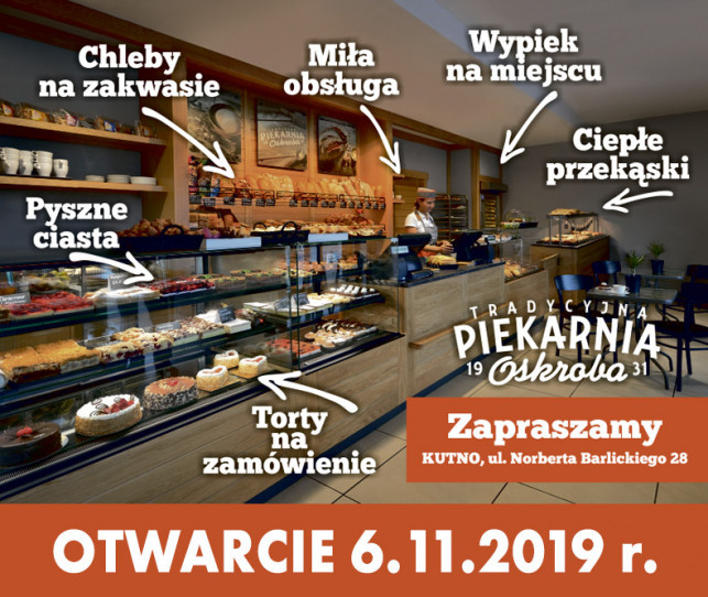 Serdecznie zapraszamy na otwarcie nowej piekarni "Oskroba" w Kutnie.