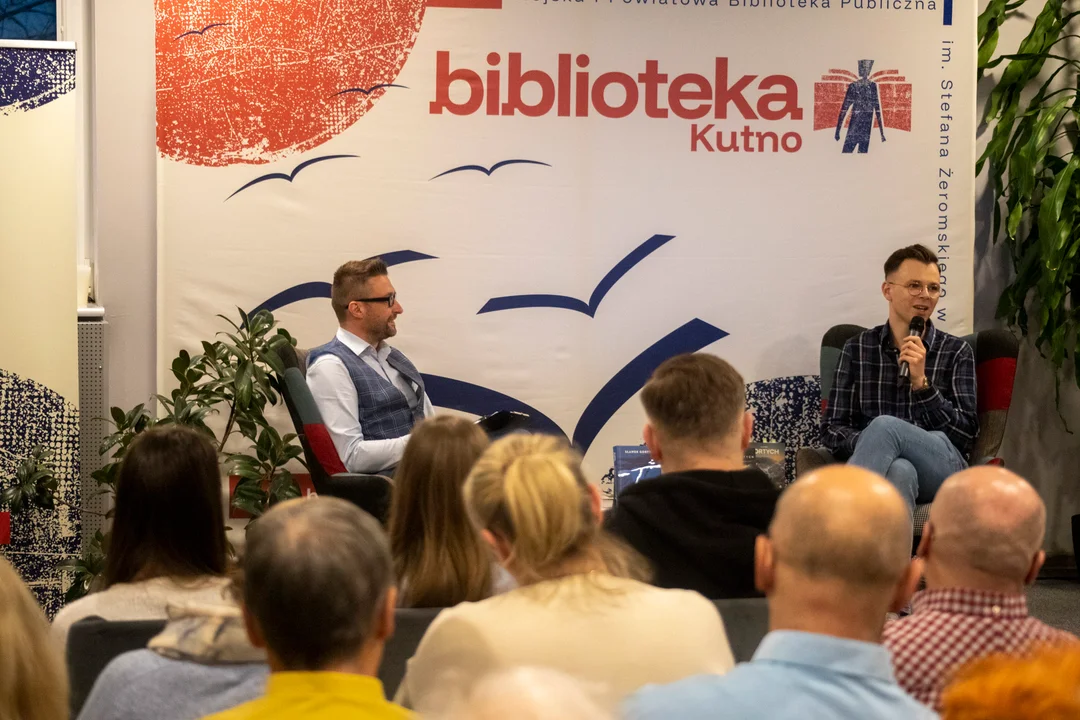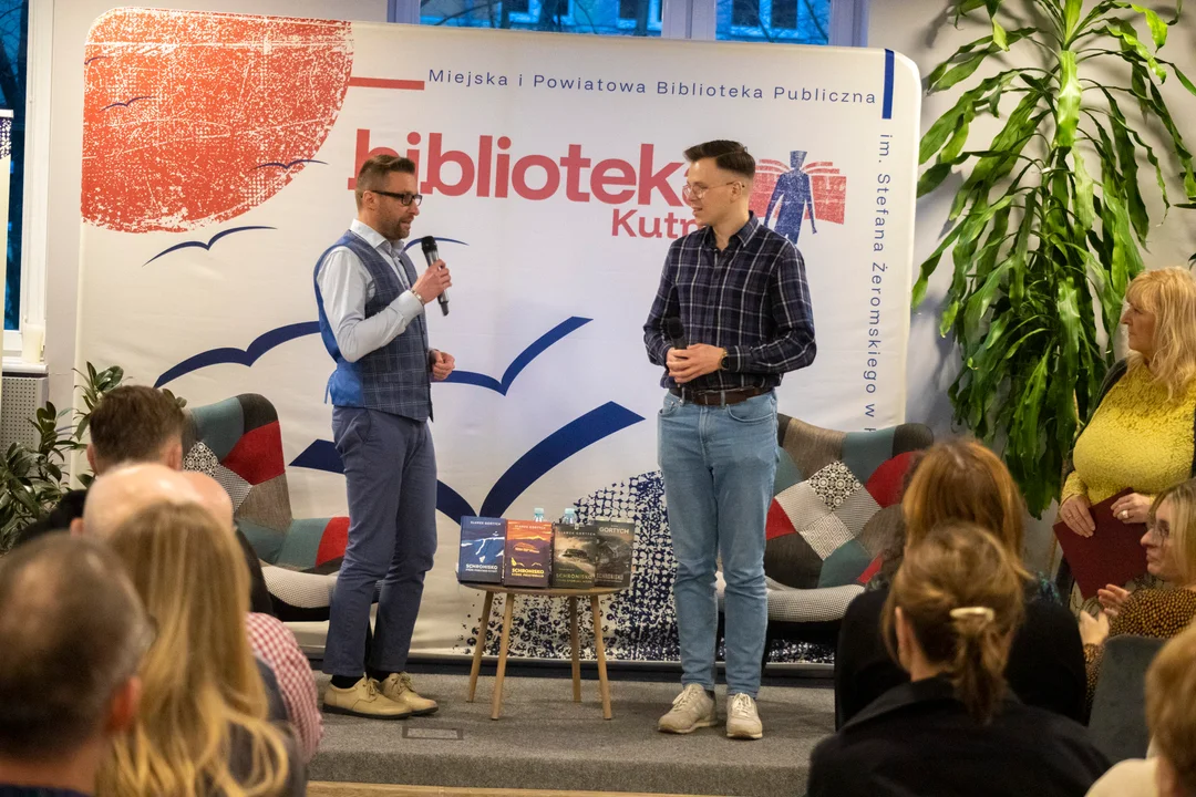 Spotkanie z autorem w sali kutnowskiej biblioteki poprowadził Radosław Wąs. Pisarz wyjaśnił, czy jego książki mogą służyć jako przewodniki po szlakach (odpowiedź: trochę tak, ale lepiej jednak mieć też mapę), opowiadał o kulisach pracy nad serią i przyznał, że inspiracje najczęściej zbiera w drodze, podczas własnych wędrówek.
