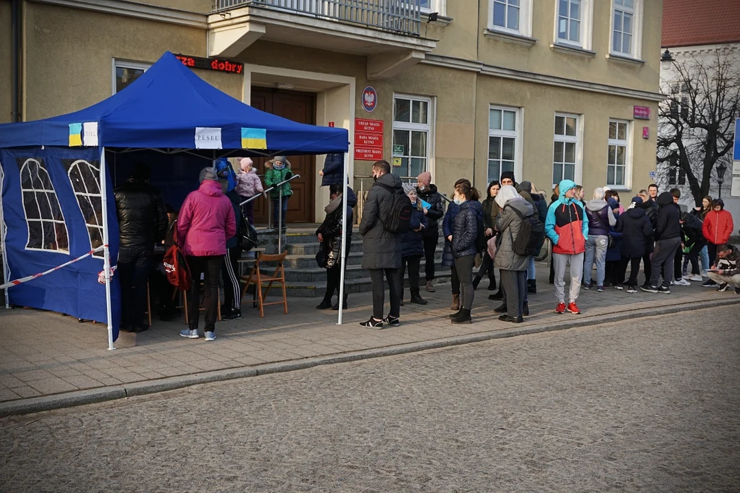 Przed budynkiem magistratu utworzony został specjalny punkt, w którym wolontariusze pomagają Ukraińcom wypełniać polskie dokumenty. Jak podkreślają przedstawiciele Urzędu, wśród oczekujących jest mnóstwo dzieci.