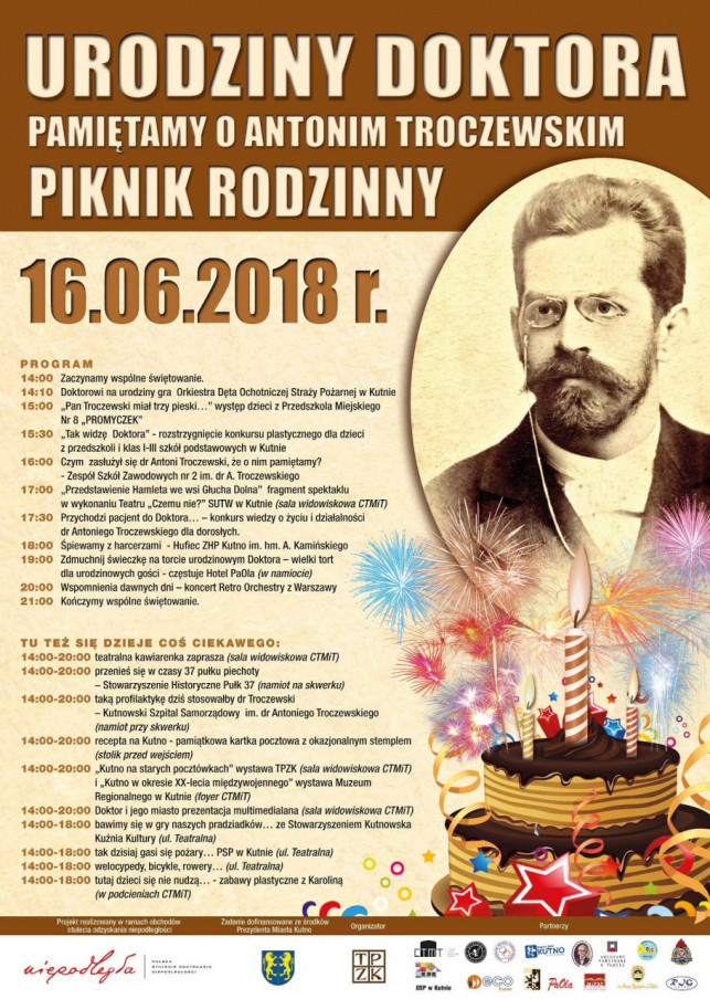 Towarzystwo Przyjaciół Ziemi Kutnowskiej zaprasza na Piknik Rodzinny - urodziny doktora Antoniego Troczewskiego. Impreza odbędzie się już 16 czerwca w Centrum Teatru, Muzyki i Tańca oraz na Rynku Zduńskim.