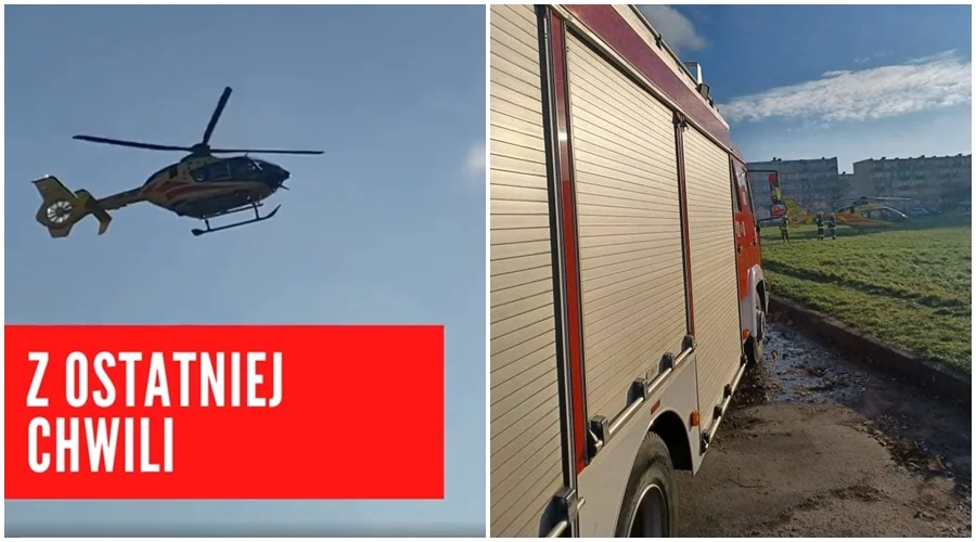 Maszyna lotniczego pogotowia ratunkowego lądowała na osiedlu Traugutta. O godzinie 10 strażacy zakończyli swoje działania.