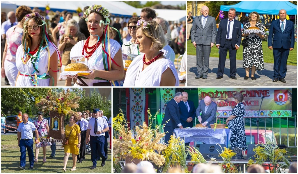 Dożynki gminne w Nowych Ostrowach rozpoczęły się mszą świętą w kościele pw. Matki Boskiej Częstochowskiej w Ostrowach. Po nabożeństwie barwny korowód przemaszerował na miejscowe boisko, gdzie odbyła się część obrzędowa z symbolicznym przekazaniem chleba i wieńców, a także przemowami okolicznościowymi, m.in. wójta Zdzisława Kostrzewy.