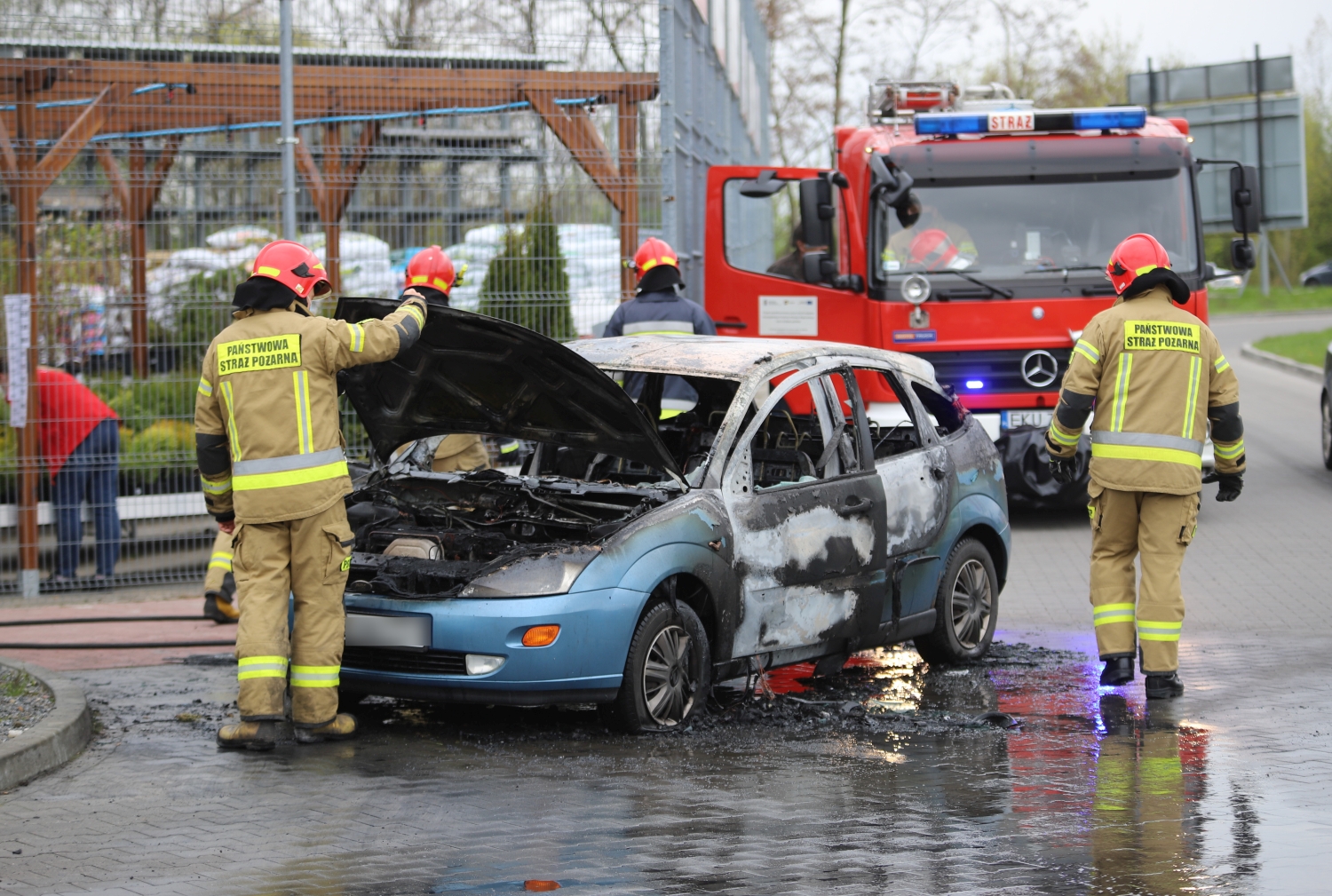 W ogniu stanął ford focus na bydgoskich numerach rejestracyjnych. Jak relacjonują nam świadkowie zdarzenia, którzy próbowali pomóc w zażegnaniu pożaru, właściciel pojazdu do samego końca starał się ratować samochód.