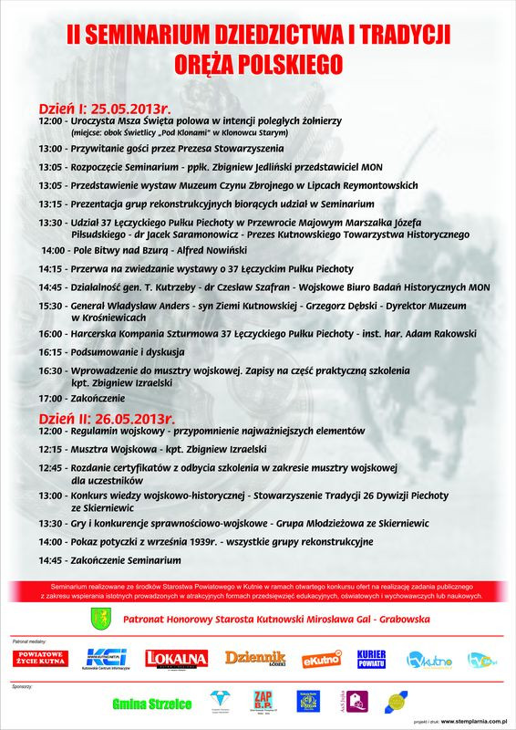 13:00 – Konkurs wiedzy wojskowo – historycznej – Stowarzyszenie Tradycji 26 Dywizji Piechoty ze Skierniewic