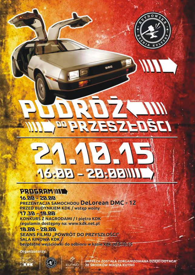 Już 21 października przed Kutnowskim Domem Kultury pojawi się samochód, który stał się kultowy, dzięki filmowej trylogii "Powrót do przyszłości. Będzie to DeLorean DMC 12.