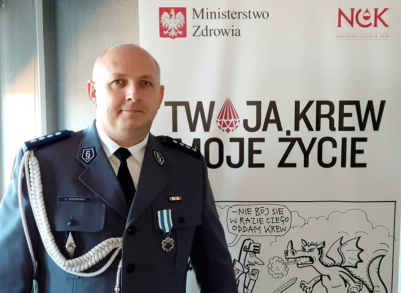 Nadkomisarz Janusz Osowski pomaganie ma we krwi, dzieli się nią od ponad 25 lat. Łącznie przez te lata, dla ratowania ludzkiego zdrowia i życia, oddał już ponad 33 litry krwi. Teraz został uhonorowany orderem „Honorowy Dawca Krwi – Zasłużony dla Zdrowia Narodu”.