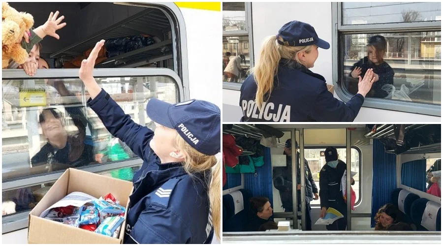 - Ale bardzo często mundurowi pomagają z potrzeby serca. Tak jak to było w przypadku kutnowskich policjantek, które widząc pociągi specjalne pełne rodzin ukraińskich uchodźców z małymi dziećmi nie mogły przejść obojętnie. Pomimo mnóstwa wolontariuszy na dworcu, ludzi dobrych serc same również postanowiły zakupić słodycze dla najmłodszych i rozdawały je podczas jednego z postojów pociągu specjalnego - relacjonuje podkom. Edyta Machnik.