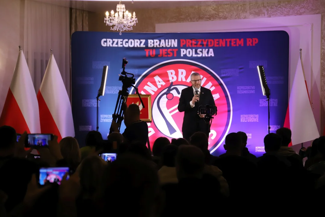- Polacy oddychają z ulgą, gdy usłyszą parę słów prawdy. Polacy oddychają z ulgą, gdy upominamy się o Polskę dla Polaków. I to jest program mojej kandydatury i prezydentury. Jeśli szanowni Państwo zechcecie i jeśli damy radę w ciągu najbliższych 8 tygodni jeszcze poinformować dostateczną liczbę naszych rodaków to, to jest ten program. Polska przede wszystkim dla Polaków. Tu jest Polska i niech tak zostanie. - mówił Braun.