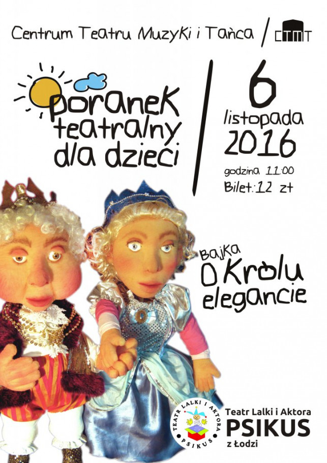 Już 6 listopada o godz. 11 CTMiT zaprasza na spektakl "Bajka o królu elegancie". Jest to zabawna, autorska wersja „Nowych szat króla“ wg. H. Ch. Andersena.