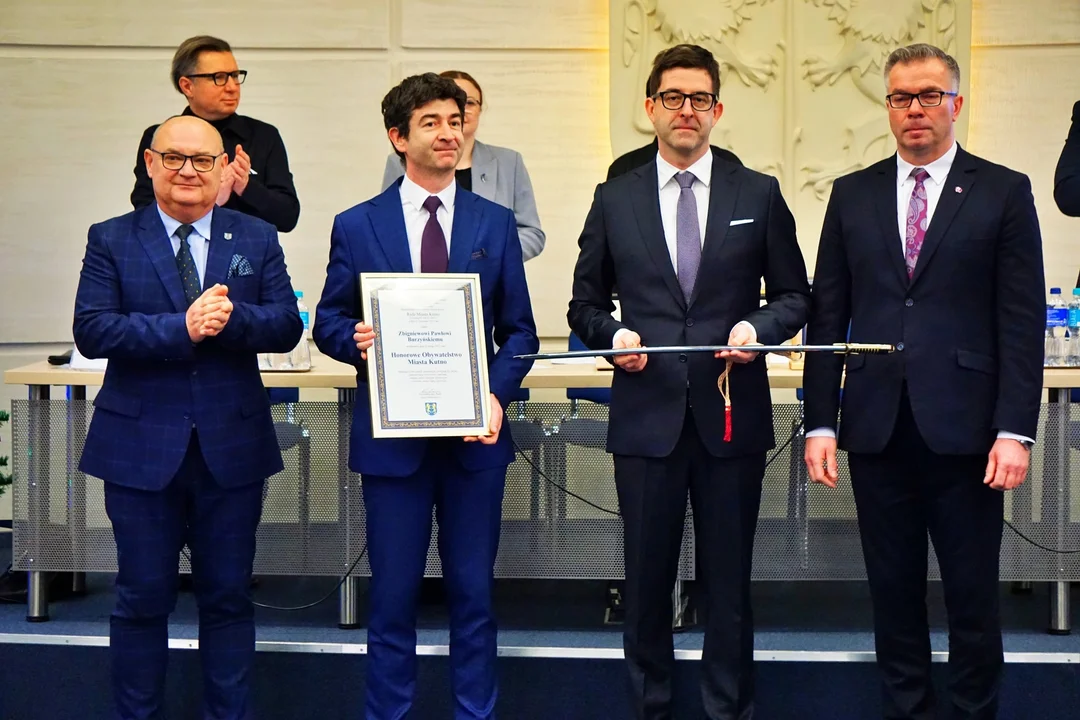 - Dziś mamy zaszczyt uroczyście wręczyć najbliższej rodzinie śp. Zbigniewa Pawła Burzyńskiego dokument potwierdzający nadanie tego zaszczytnego wyróżnienia, którym jest akt nadania honorowego obywatelstwa, oraz symboliczną szablę. Wyróżnienie odbiorą synowie uhonorowanego, panowie Cezary i Paweł Burzyńscy – mówił Paweł Markiewicz, przewodniczący rady miasta.
