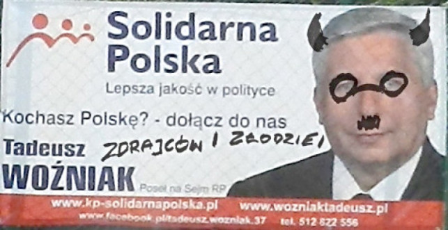 W regionie pojawiły się pierwsze plakaty promujące partie polityczne. Pośpiechem wykazała się Solidarna Polska i poseł Tadeusz Woźniak, który w wielu miejscowościach uśmiecha się z tablic i słupów ogłoszeniowych. Jednak jak widać nie wszystkim podoba się tak wczesne rozpoczęcie przedwyborczej promocji. Jak alarmują czytelnicy, wiele z plakatów zostało zdewastowanych. Wymazano na nich wulgarne hasła, które aż kłują w oczy w przechodniów.