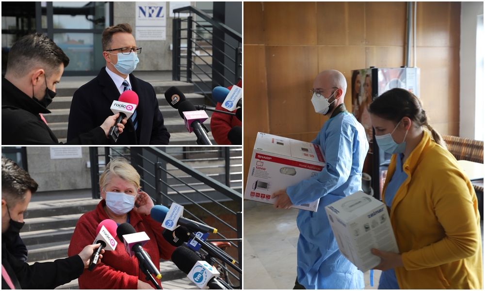 - Po pierwsze chce przekazać tę symboliczną mikrofalówkę, symboliczny czajnik, bo to jest taka sybolika braku szacunku rzadzących do białego personelu. W żadnym szpitalu nie dba się o to, by ten personel miał lżej, miał podstawowe rzeczy, żeby pełnić tę ciężką służbę - stwierdził Dariusz Joński.