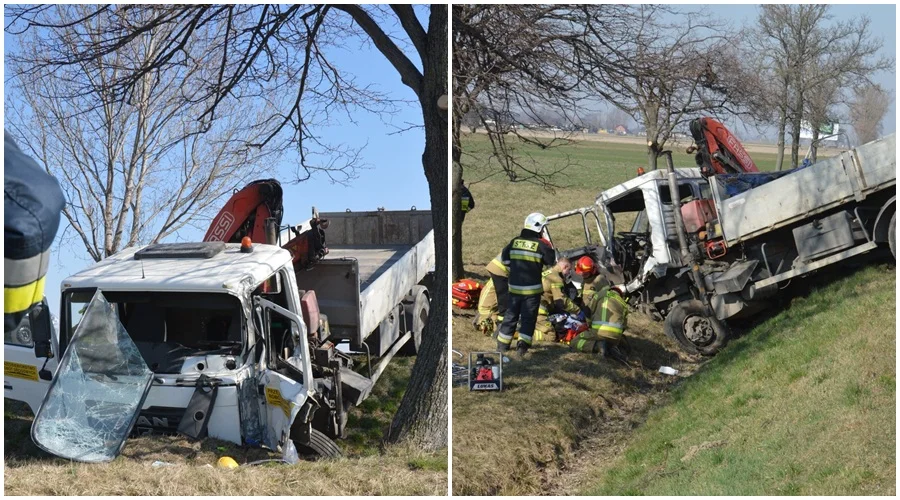 Poważny wypadek na drodze krajowej, zderzyły się dwie ciężarówki. Lądował śmigłowiec pogotowia [ZDJĘCIA]