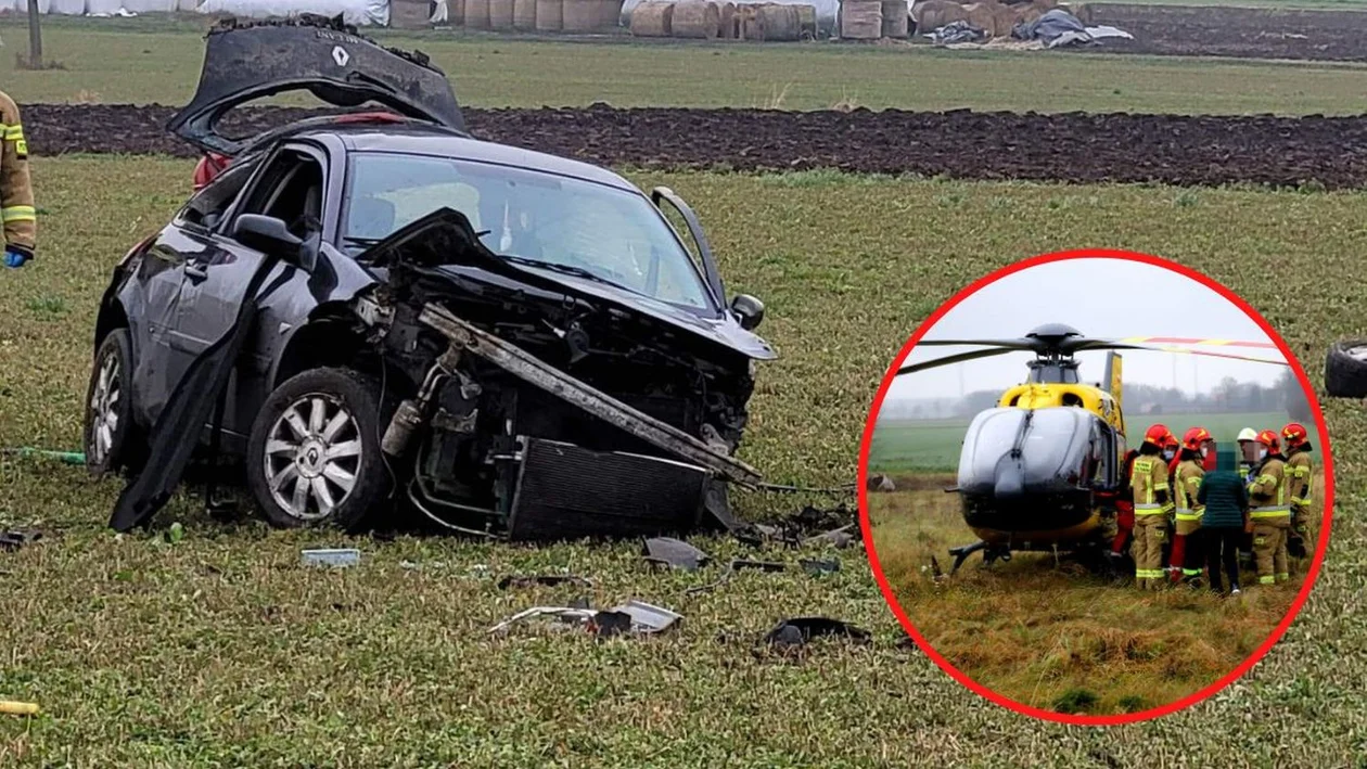 Poważny wypadek z udziałem osobówki. Lądował śmigłowiec LPR, ranne dwie osoby [ZDJĘCIA]