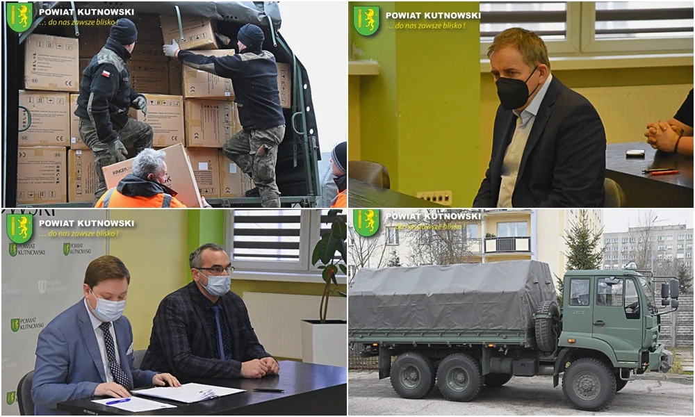 Starosta kutnowski Daniel Kowalik wraz z członkiem Zarządu Powiatu Kutnowskiego Tomaszem Walczewskim przekazali na rzecz gmin i miast z terenu powiatu kutnowskiego łącznie 500 tys. sztuk maseczek ochronnych.