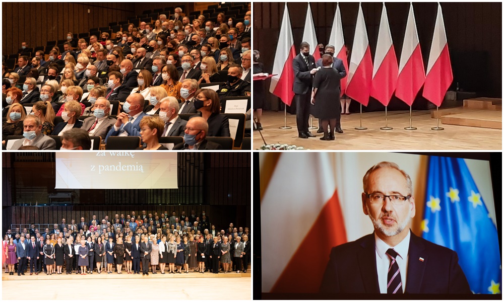 Uroczystość wręczenia odznaczeń za szczególne zaangażowanie w walce z pandemią odbyła się 20 października w Filharmonii Łódzkiej. Wyróżnione osoby otrzymały Złote, Srebrne i Brązowe Krzyże Zasługi, łącznie uhonorowano nimi 195 osób. Wśród odznaczonych liczną grupę stanowili przedstawiciele placówek medycznych i instytucji należących do samorządu województwa łódzkiego.