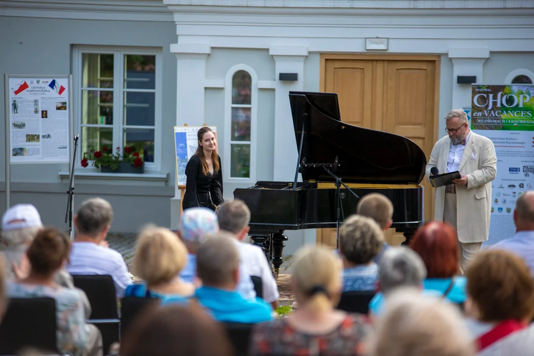 Koncert Chopin en Vacances rozpoczął się o godz. 17.30 na terenie zespołu dworsko-parkowego w Leszczynku. Głównymi bohaterami tego przedstawienia byli uzdolnieni, najwyższej klasy pianiści, grający na historycznym fortepianie Małecki z 1882 r.