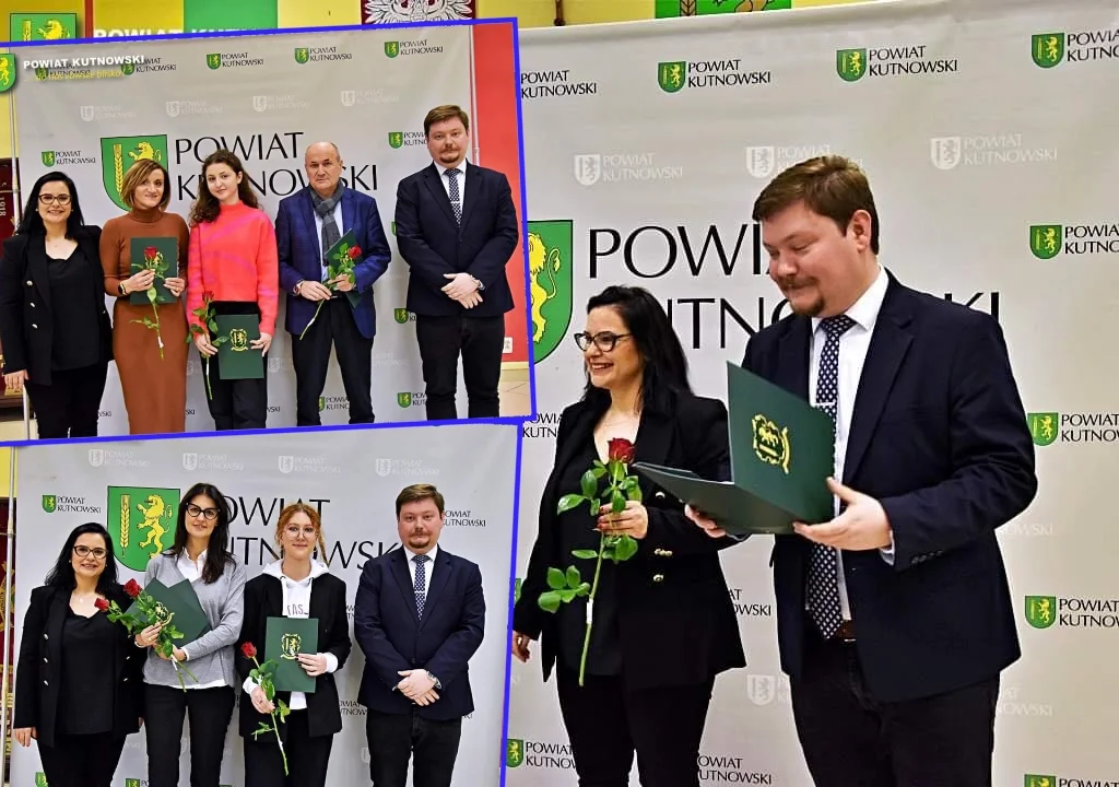 Starosta kutnowski Daniel Kowalik oraz wicestarosta Magdalena Krupińska-Kotulska pogratulowali nowo wybranym w powiatowych szkołach: