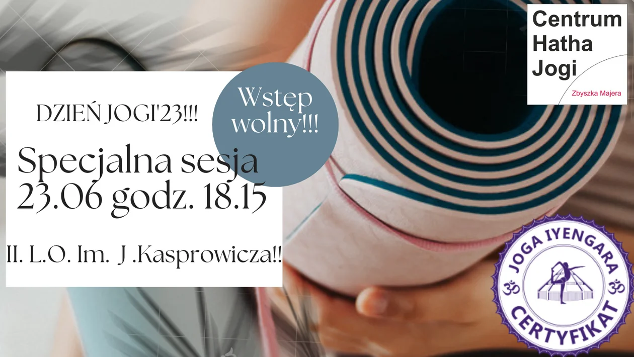 W przyszłym tygodniu będziemy świętować Międzynarodowy Dzień Jogi. Również w Kutnie pojawi się okazja na wpólne spotkanie z jogą! To dobry moment na wymianę doświadczeń, opinii, poglądów albo po prostu pobycie przez chwilę ze sobą. Spotkajmy się razem!!! Ci, którzy tylko o jodze słyszeli z tymi, którzy pierwsze kroki mają już za sobą. Z tej okazji poprowadzę specjalną, otwartą dla wszystkich sesję, w piątek 23-go czerwca o godz 18.15 w II L.O im. J.Kasprowicza. Wstęp wolny.