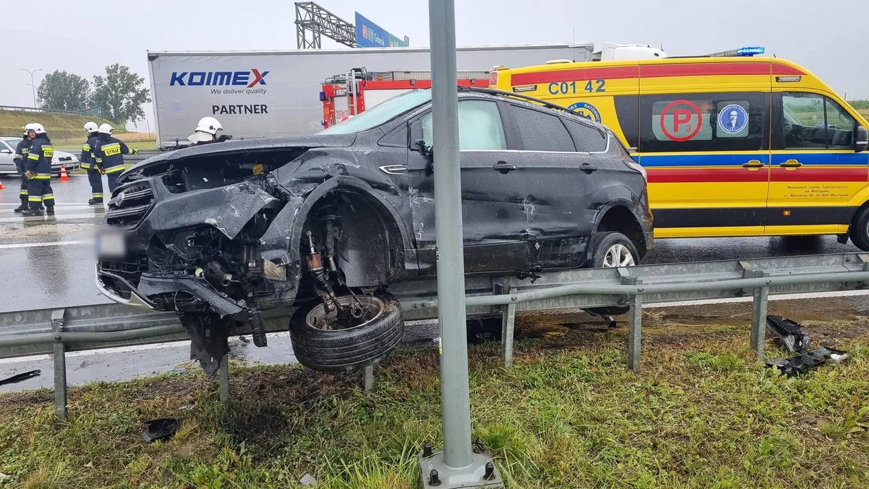 Do zdarzenia doszło wczoraj około godziny 13:10. Jak relacjonuje Ochotnicza Straż Pożarna z Kowala na 216 kilometrze A1 niedaleko węzła autostradowego auto osobowe uderzyło w bariery energochłonne.