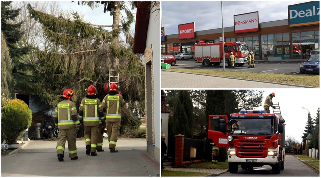 Działania prowadzone są też w samym Kutnie. Strażaków wezwano do pasażu handlowego przy ul. Żwirki i Wigury, gdzie zgłoszono uszkodzone poszycie dachu.