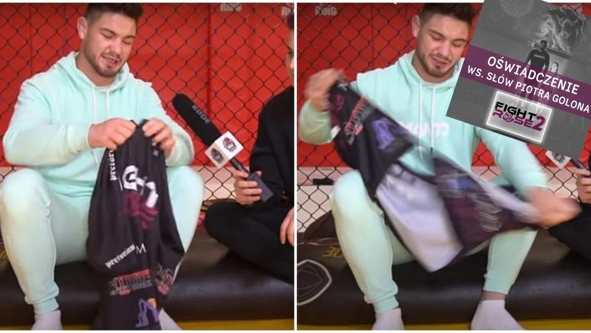 Jednocześnie pragniemy zaznaczyć, że posiadamy dowody w postaci zapisów rozmowy z osobami reprezentującymi Piotra Golona na nieprawdziwość tych oskarżeń. W związku z tym domagamy się oficjalnych przeprosin ze strony Piotra Golona. W przeciwnym razie organizacja Fight Rose podejmie stosowne kroki prawne w celu zadośćuczynienia krzywdom moralnym, których względem Grupy Fight Rose dopuścił się Piotr Golon.