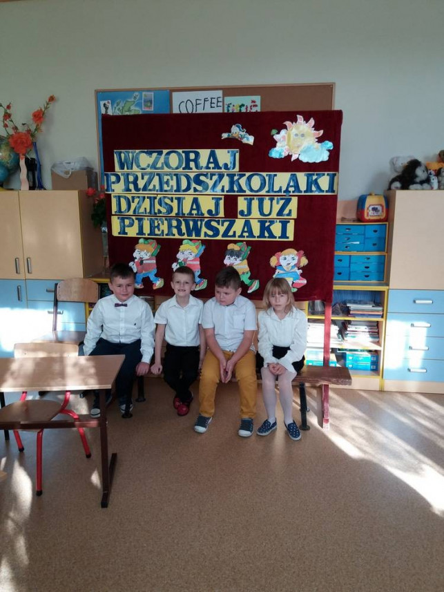 Pierwszoklasiści wraz ze swoimi rodzicami złożyli ślubowanie na sztandar swojej szkoły. Następnie pani dyrektor Beata Cieślak wielkim, kolorowym ołówkiem pasowała najmłodszych wychowanków na uczniów klasy I. Dzieci otrzymały piękne dyplomy oraz upominki. Pierwszoklasiści zaprezentowali również swoje umiejętności artystyczne. W krótkim montażu słowno-muzycznym pięknie recytowali wiersze i śpiewali piosenki. Nad sprawnym przebiegiem uroczystości czuwała ich wychowawczyni p. Lilla Siedlecka, a rodzice pasowanych uczniów przygotowali słodki poczęstunek.