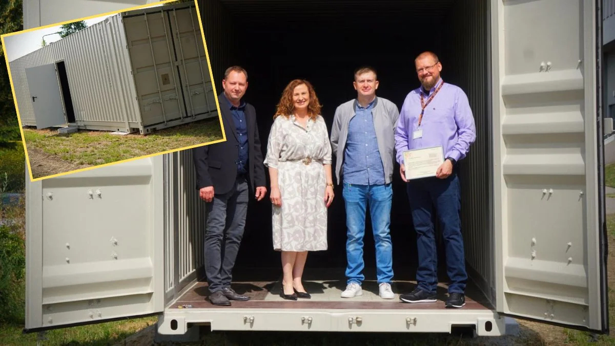 Kontener ustawiono na terenie kompleksu sportowego. Będzie służyć jako magazyn i przechowywane tam będą różne sprzęty potrzebne w szczególności podczas zajęć wychowania fizycznego.