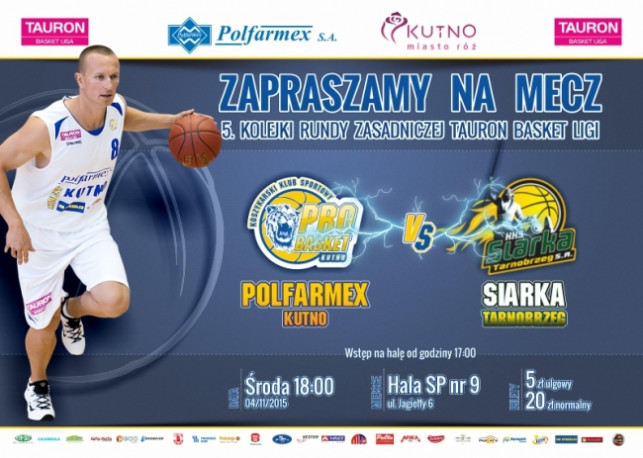 WydarzeniaKKS PRO BASKET KUTNO S.A. informuje, iż w siedzibie klubu od dnia 28 października (środa) od godziny 9 rusza sprzedaż biletów na mecz Polfarmex Kutno – Siarka Tarnobrzeg.Mecz odbędzie się w dniu 4 listopada (środa) o godzinie 18 w hali sportowej przy szkole podstawowej nr 9 w Kutnie. Bilety do nabycia będą w biurze klubu mieszczącego się w Kutnie przy ulicy Kościuszki 26.