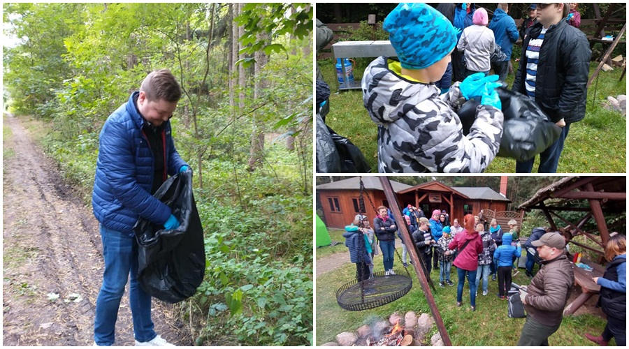 Starosta wspólnie z pracownikami starostwa i dzieciakami sprząta las pod Kutnem | fot. Powiat Kutnowski