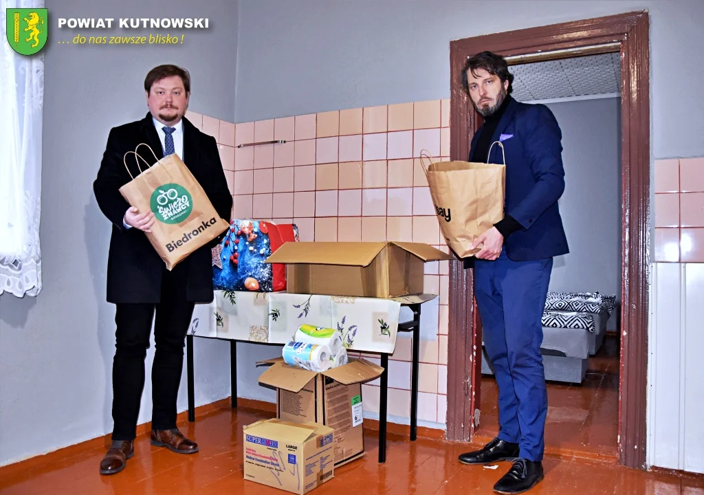 Żywność, produkty chemiczne, ubrania oraz chipsy zostały przekazane przez starostę Daniela Kowalika oraz zastępcę dyrektora ds. jakości i komunikacji w kutnowskim szpitalu, Bartosza Serendę. Dary zebrano przy współpracy obu instytucji.