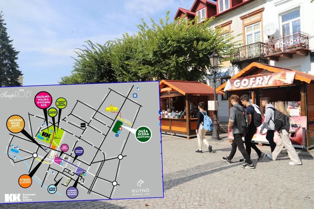 Kutnowski Dom Kultury opublikował również mapkę, na której znajdziecie atrakcje tegorocznego Święta Róży. Znajdziecie ją poniżej.