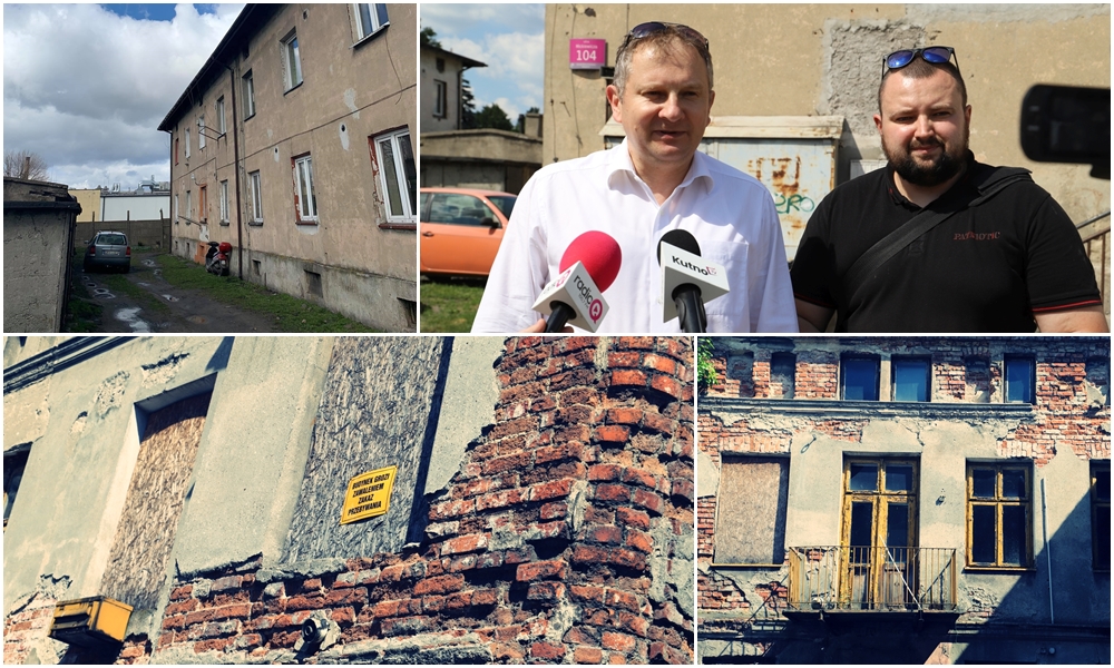 Artur Gierula zwracał uwagę na tabliczkę informującą o tym, że budynek grozi zawaleniem i stanowi zagrożenie dla mieszkańców.