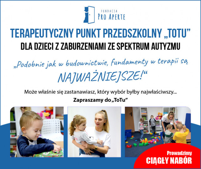 Terapeutyczny Punkt Przedszkolny "ToTu" to miejsce, w którym dziecko otrzymuje to, czego najbardziej potrzebuje: uwagę, opiekę i troskę.