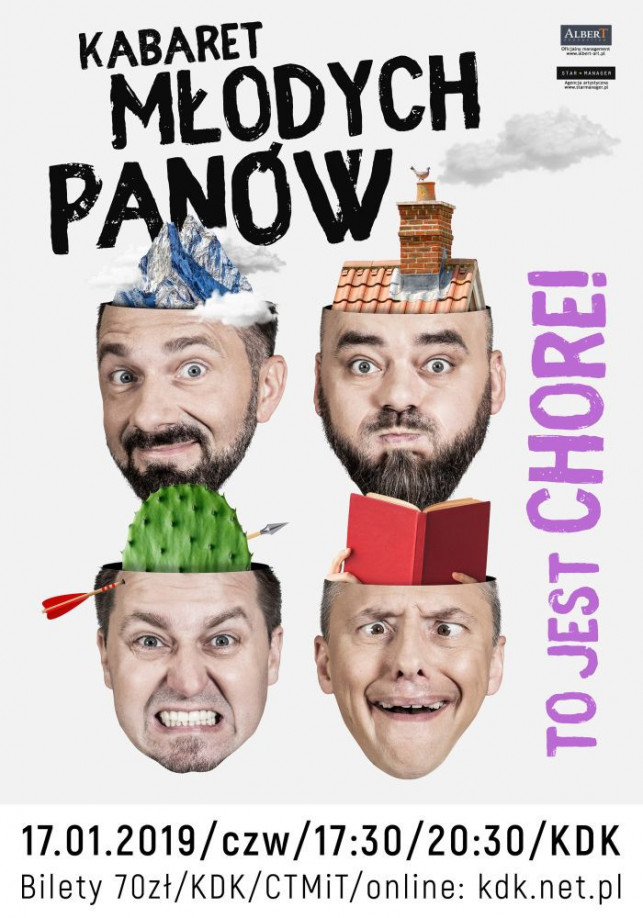 Absolutna premiera najnowszego programu Kabaret Młodych Panów! Nowe pomysły, nowe skecze, nowi bohaterowie i nowe żarty. A oprócz tego? Powrót znajomych twarzy i ich dalsze perypetie. Nie zabraknie też śląskich akcentów. Zapraszamy 17 stycznia o godz. 17:30 i 20:30 do KDK.
