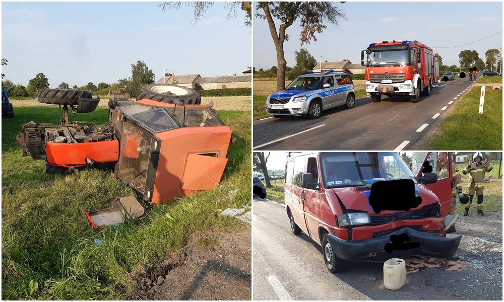 Wypadek z udziałem auta dostawczego i traktora na DW 583 | fot. OSP Sanniki