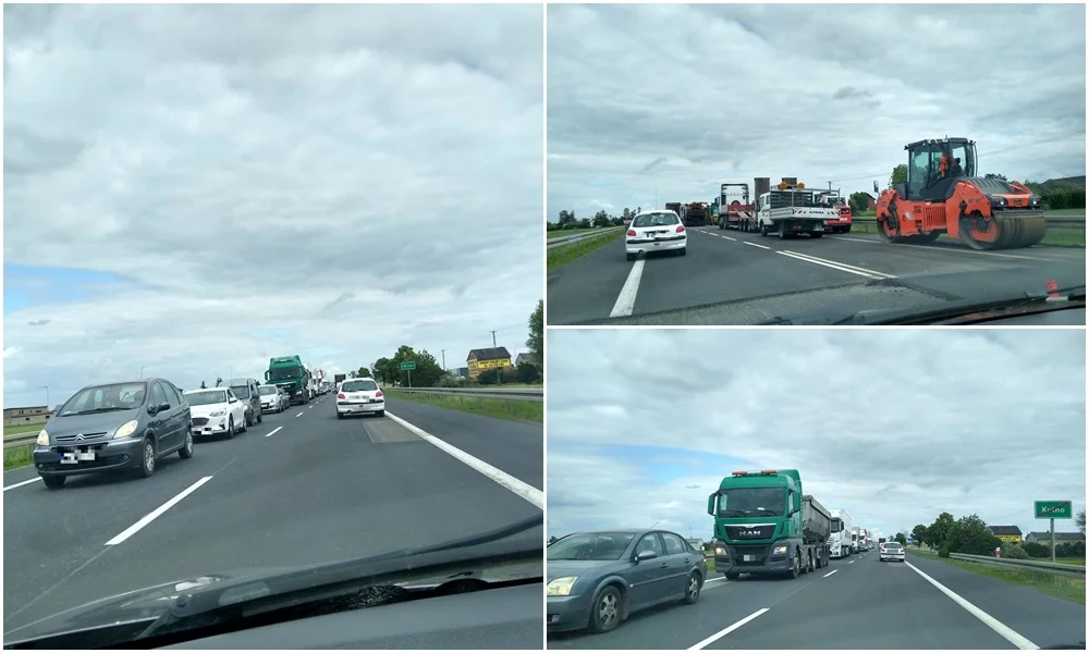 Na DK 92 na wysokości kutnowskiej strefy ekonomicznej trwają roboty drogowe, tworzą się duże korki | fot. toza