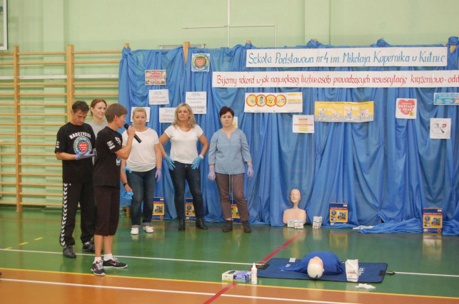 Na uwagę zasługuje fakt, iż szkoła ta jako jedyna w Kutnie już po raz piąty podjęła się wyzwania i przystąpiła do próby bicia rekordu. Dzień, w którym podjęto tę próbę nie jest przypadkowy, gdyż 16 października Europejska Rada Resuscytacji ogłosiła „Europejskim Dniem Przywracania Czynności Serca”. Dlatego też tego dnia w samo południe w szkołach i instytucjach w całej Polsce rozpoczęła się półgodzinna akcja resuscytacyjna. Wykonowano ją na fantomach. W „czwórce” w akcji tej wzięło udział 69 uczestników. Wszyscy z dużą wprawą i zaangażowaniem wykonywali czynności obejmujące przywracanie akcji serca (reanimację krążeniowo-oddechową).